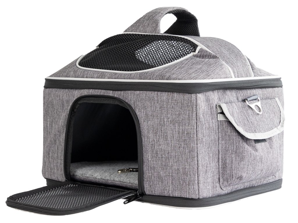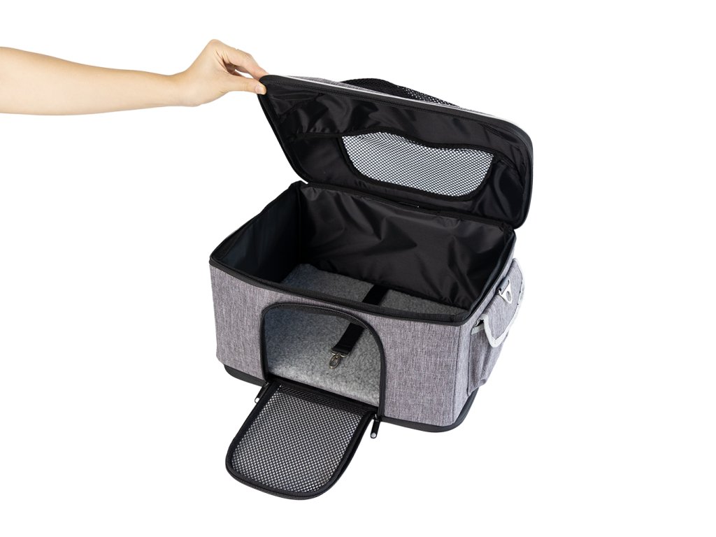 Praktický je také přední vstup, který umožňuje pohodlné a méně stresující vložení mazlíčka do tašky. Díky rychloskládacímu mechanismu lze tašku snadno složit během několika vteřin, když ji zrovna nepoužíváte. Boční kapsy poslouží na pamlsky, vodítko, sáčky nebo další drobnosti.