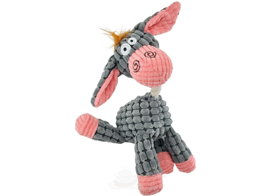 Hledáte ideální hračku pro vašeho čtyřnohého kamaráda? Ušatého oslíka je přesně to, co potřebujete! Tato měkká plyšová hračka s provazovým krkem nejenom skvěle zabaví vašeho psa, ale také přispěje k jeho zubní hygieně. Vyrobena z měkkého, na dotek příjemného a zároveň odolného plyšového manšestru. Po zmáčknutí píská.