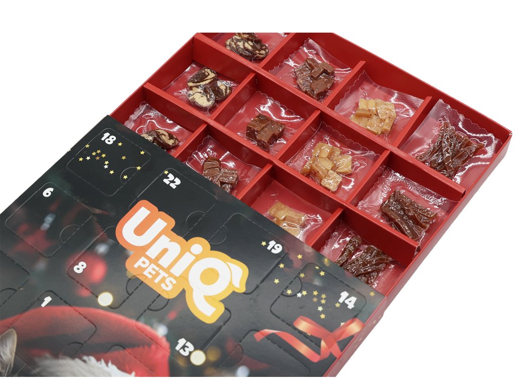 Kouzlo Vánoc začíná už dnes! Vánoční magie není jen pro lidi - nyní se váš chlupatý kamarád může připojit k sváteční atmosféře s naším exkluzivním adventním kalendářem. Každé okénko skrývá lahodné překvapení, které učiní odpočítávání do Vánoc nezapomenutelným zážitkem plným chutí, vůní a radosti.