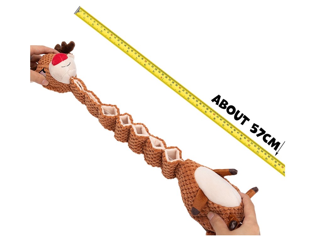 Už žádné nudné Vánoce! Tato plyšová vánoční hračka pro psy ve tvaru Rudolfa je multi-funkční výzvou pro každé štěně i dospělého psa. Kombinuje duševní práci s náročnou fyzickou hrou.