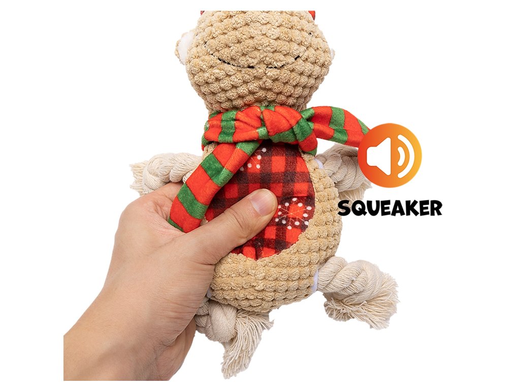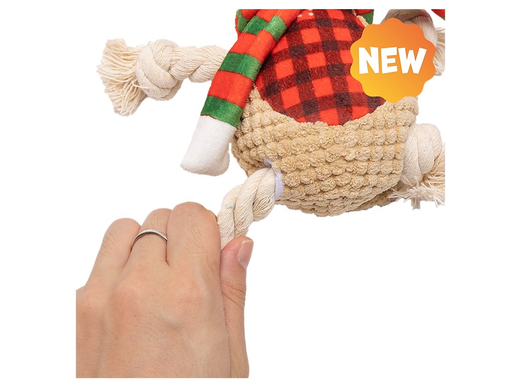Hledáte odolnou a interaktivní vánoční hračku pro psy? Seznamte se s Rudolfem – plyšovým kamarádem, který kombinuje měkký manšestr s pevnou provazovou konstrukcí!