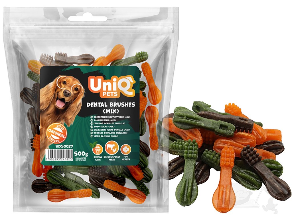 UNIQ Pets Zubní kartáčky s mořskou řasou, mix- máta, hovězí, kuřecí 500g